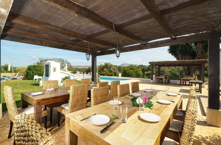 The main accommodation spans two levels and features a living room with a fireplace, television, DVD player, and iPod docking station, along with an additional living area and two dining rooms. Three air-conditioned bedrooms have queen-size beds with en-suite bathrooms, while additional bedrooms include twin beds, bunk beds, and a mix of fans and air conditioning to ensure comfort. The villa also offers satellite and cable TV, a utility room with a washing machine, and Wi-Fi.