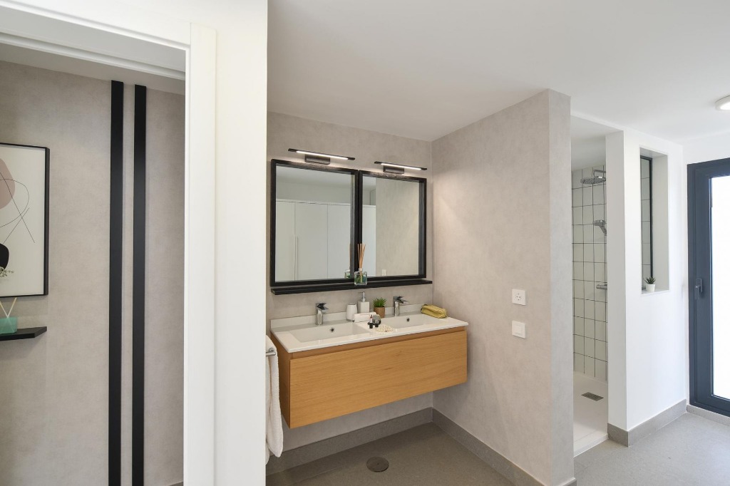Accommodating up to 4 guests, this elegant property is located within the exclusive Salobre Golf Resort, offering a peaceful and luxurious retreat. The villa features a bright, modern interior with two spacious bedrooms and two full bathrooms. The master bedroom includes a comfortable double bed and an en-suite bathroom, while the second bedroom has twin beds that can be configured together or apart, with access to a shared bathroom. Both rooms are thoughtfully furnished with ample storage and tasteful decor, ensuring comfort and style throughout your stay.