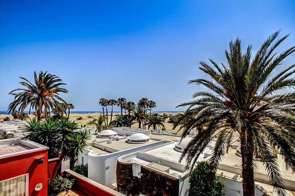 This beachfront property offers an unparalleled opportunity to experience Gran Canaria's southern coast. Its prime location places guests within easy reach of Playa del Inglés Beach and the iconic Maspalomas Dunes, perfect for sunbathing, swimming, walking, and photography. Nearby attractions include Maspalomas Lighthouse, the lively Yumbo Centrum with shops, bars, and restaurants, and Palmitos Park, featuring botanical gardens and exotic wildlife.