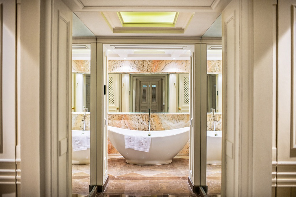 Bedroom details: - Bedroom 1: King bed, ensuite with stand-alone shower & bathtub, dual vanity, walk-in closet, lounge, fireplace, TV, safe - Bedroom 2: King bed, TV, desk, safe, lounge, shared access to Bedroom 1 bathroom - Bedroom 3 (Master): King bed, ensuite with stand-alone shower, dual vanity, jetted tub, fireplace, TV, lounge, safe - Bedroom 4: King bed, ensuite with shower/jetted tub combo, lounge, TV, safe - Bedroom 5: 2 Twin beds, ensuite with shower/bathtub combo, TV, private terrace, safe - Bedroom 6: King bed, ensuite with stand-alone shower, TV, terrace