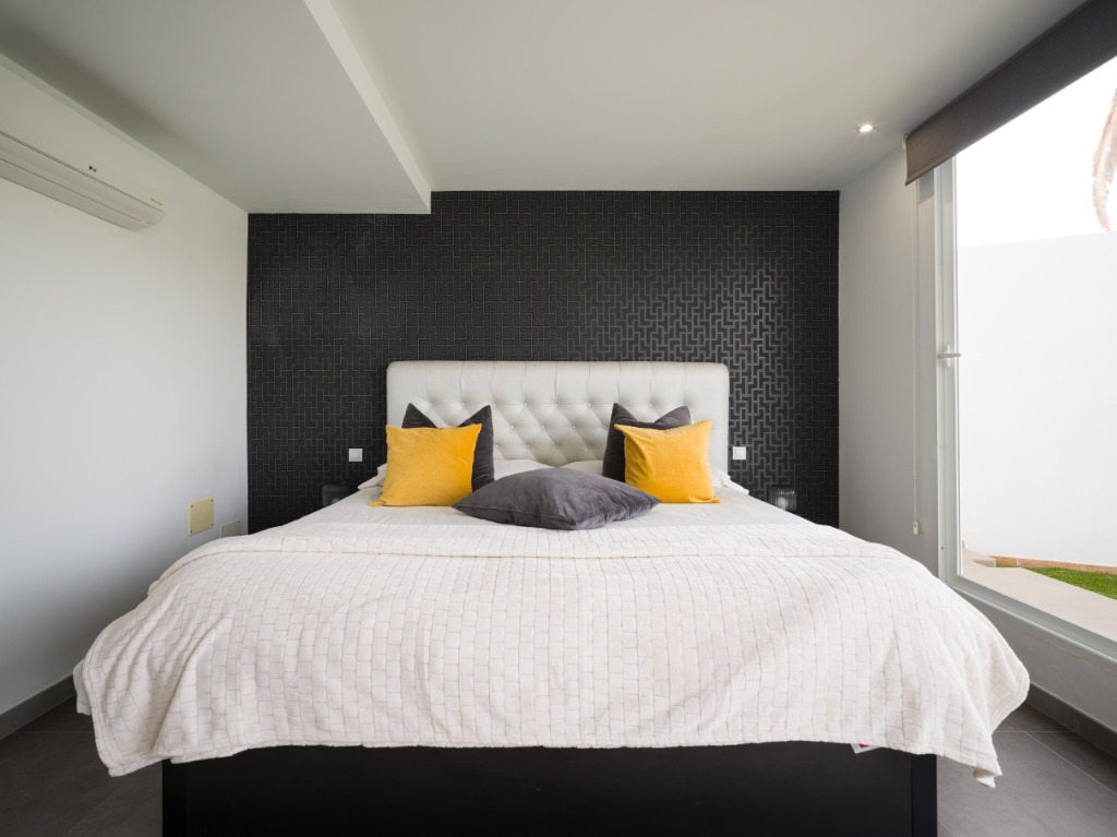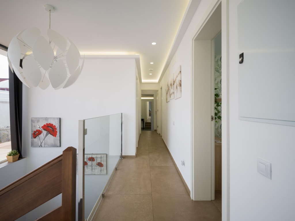 The property accommodates up to 10 guests across five inviting bedrooms, each offering comfort, privacy and air conditioning for year-round relaxation. With a distribution of 10 beds and three modern bathrooms plus a guest toilet, the layout ensures practicality and flexibility for families, small groups or couples travelling together. Neutral colours, quality bedding and simple yet elegant furnishings contribute to a peaceful retreat-like atmosphere in every sleeping space.