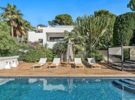 Set in the vibrant area of Puig Manya, Ibiza, this modern four-bedroom property comfortably accommodates up to 8 guests. Featuring four bathrooms and a private pool, it combines contemporary design with comfort, offering sea views, a fenced garden, and convenient access to Ibiza Town and nearby beaches-ideal for families or groups of friends.