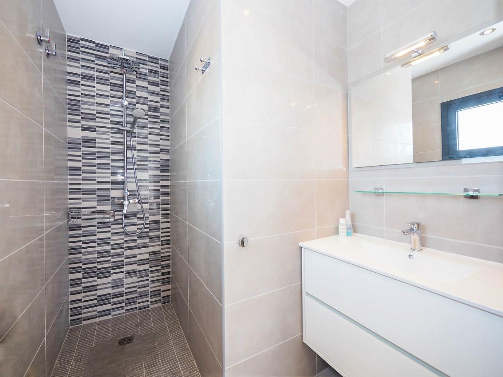 First Floor - Double bedroom (150 x 200 cm) with en-suite shower and balcony access - Double bedroom (150 x 200 cm) with en-suite shower and balcony access - Double bedroom (140 x 200 cm) with en-suite shower - Children's bedroom with bunk bed and single bed (90 x 200 cm) with en-suite shower