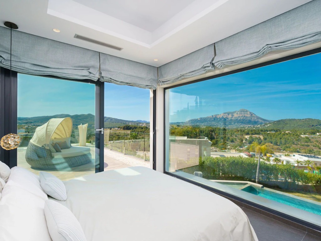 With a private pool, hot tub, three terraces, modern interiors and panoramic outdoor areas, this villa offers a luxurious and peaceful base between Javea and Moraira.