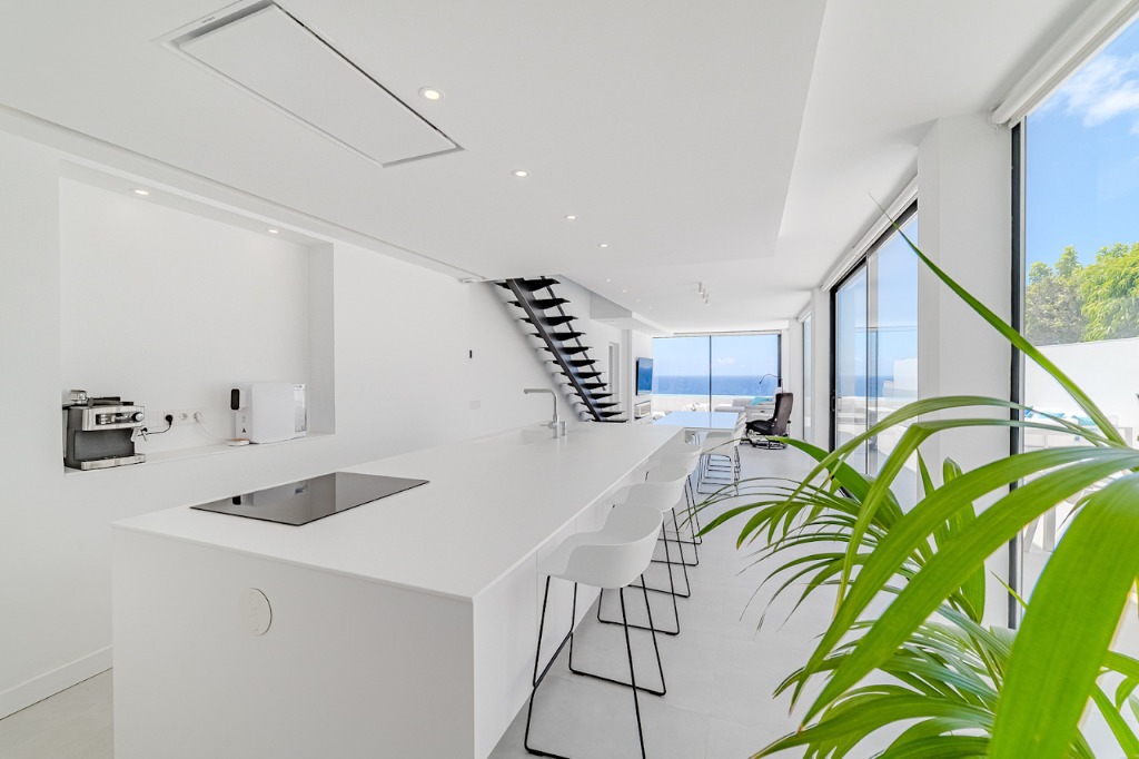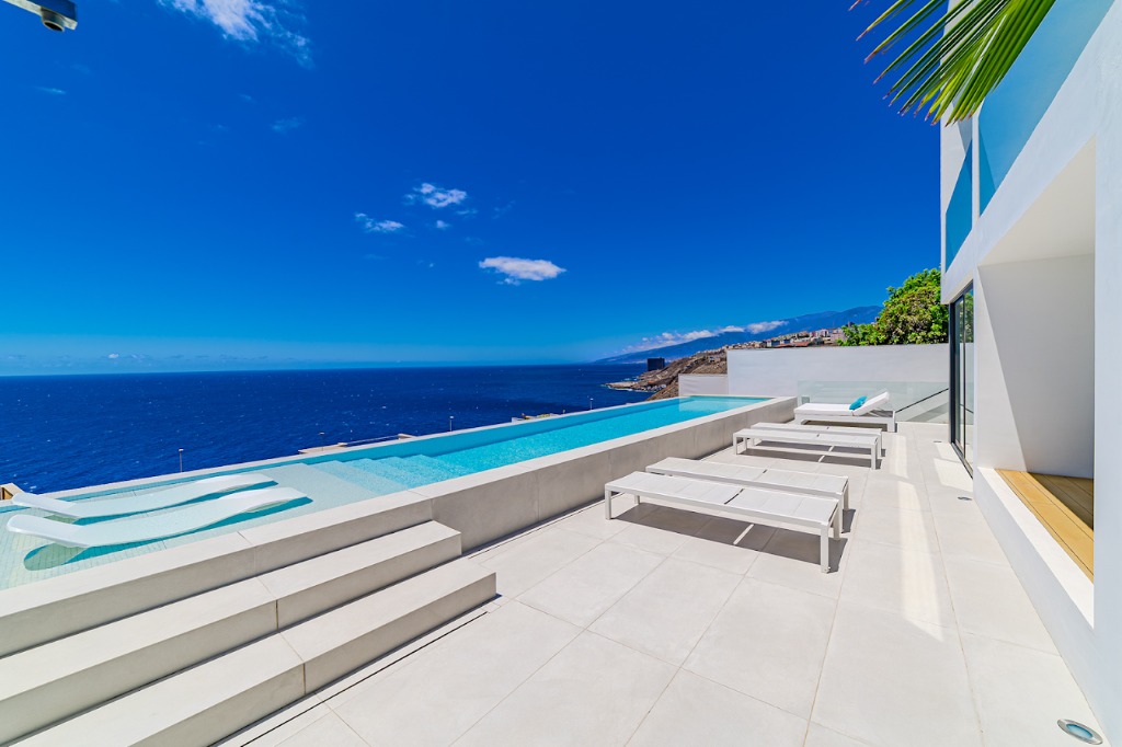 This contemporary villa offers a remarkable blend of modern architecture, natural light, and uninterrupted sea views, creating a serene and luxurious retreat on the outskirts of Santa Cruz de Tenerife. Designed with clean lines and a minimalist aesthetic, the accommodation is strategically positioned to provide total privacy while remaining perfectly connected to the capital. Its east-facing orientation and full-height glass façades ensure each morning begins with extraordinary sunrise views over the Atlantic.