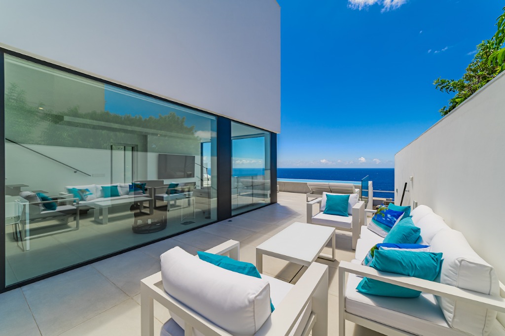 The villa was built using high-quality materials, noble flooring and carefully crafted lighting, achieving a blend of comfort and architectural sophistication. The impressive infinity pool is positioned to visually merge with the ocean, creating one of the home's most breathtaking features. Whether you choose to relax by the pool, enjoy peaceful mornings on the terrace or admire the vivid colours of sunrise, every detail enhances the overall experience.