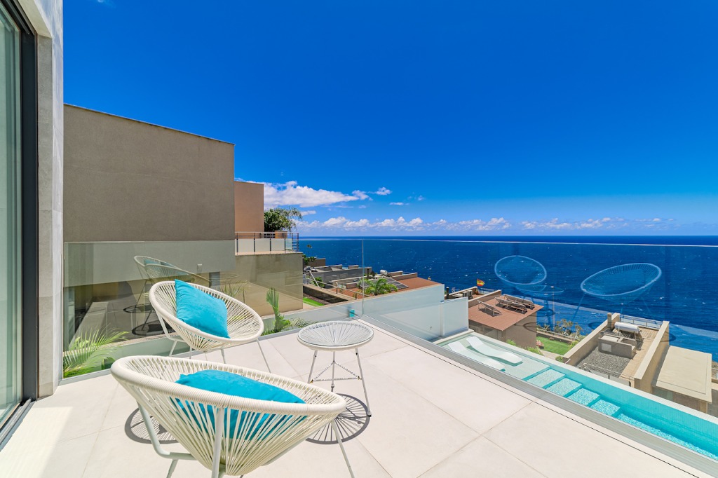 The master suite stands out with its exceptional volume, elegant dressing room and a private jacuzzi overlooking the sea, creating a sanctuary ideal for relaxation and privacy. Outdoors, a second panoramic jacuzzi invites guests to unwind while surrounded by nature and open views of the horizon.