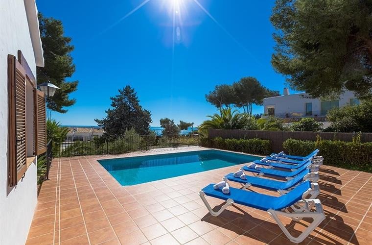 Set in a peaceful, wooded area just 500 meters from the beach, the property is surrounded by lush greenery and offers beautiful sea views. The private 8m x 4m pool, with a depth of 1.2m, is ideal for cooling off and relaxing under the Costa Blanca sun, accompanied by sunbeds for maximum comfort.