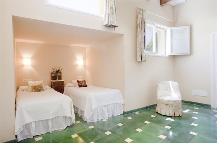 This villa is a spacious mansion in Santa Margalida, Mallorca, offering a serene retreat for families and friends. With 9 bedrooms and 8 bathrooms, it comfortably accommodates 18-22 guests, making it ideal for large groups. The main house features 6 double rooms, each with a private bathroom, while three guesthouses provide additional space with multiple bedrooms, bathrooms, and private gardens.