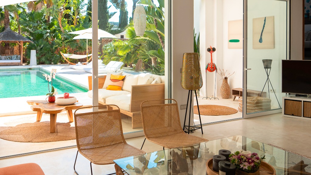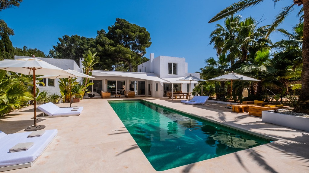 Located in a privileged area of Santa Eulalia, the villa is just steps from Cala Llonga beach and the exclusive Roca Llisa golf course. Restaurants, shops, and cultural attractions are nearby, allowing guests to enjoy both the sea and the vibrant lifestyle of Ibiza while remaining in a tranquil and private retreat.