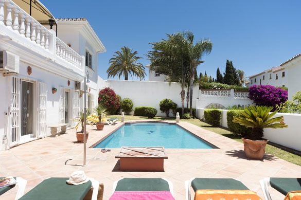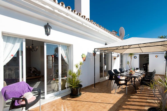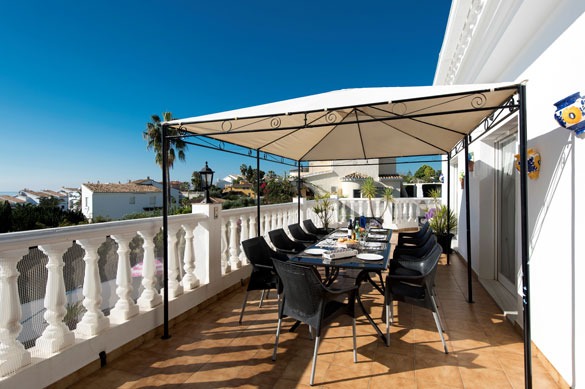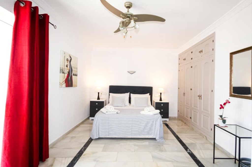 Located in Cala de Mijas, Costa del Sol, this spacious villa accommodates up to 10 guests with 5 bedrooms and 3 bathrooms. Set over two floors, the property is just a short walk from Mijas Costa beach and the resort centre, with Fuengirola and Marbella within easy driving distance. The villa is bathed in natural light thanks to its large south-facing terrace, creating an airy and inviting atmosphere. It features a private heated pool, WiFi, and air-conditioned and heated bedrooms.