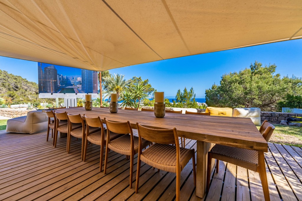 This spacious villa is a magnificent mansion with breathtaking views of Ibiza Town and the Mediterranean Sea. The open-plan living area, bar, and pool table added to our enjoyment. The outdoor entertainment system with a giant screen was a fantastic addition for movie nights.