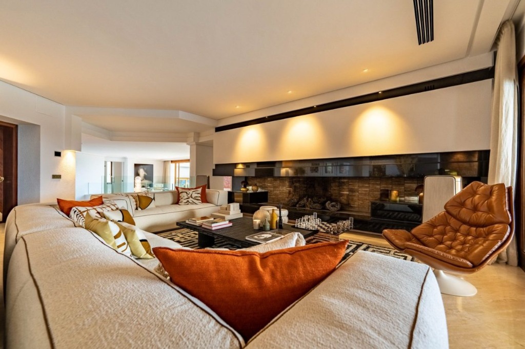 This luxurious 6-bedroom mansion is perched high above Ibiza Town, offering sweeping views of Salinas National Park, Ibiza Town itself, and the sparkling Mediterranean Sea. Perfectly positioned for privacy and convenience, the property unfolds over split levels with voluminous living areas, an infinity pool, and terraces furnished with premium outdoor furniture. Ideal for families or groups, it combines spacious interiors with stunning outdoor entertainment spaces.