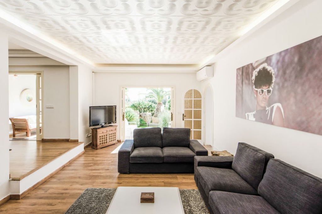 We were 15 people celebrating a birthday and the space was exactly what we needed. Plenty of bedrooms, good AC, and two living rooms so people could split up depending on mood. Some evenings we stayed on the rooftop watching planes land in the distance. One afternoon we went to Playa d’en Bossa since it was literally a few minutes away. The garden feels tropical and gives a nice vibe. Very good value for the size.