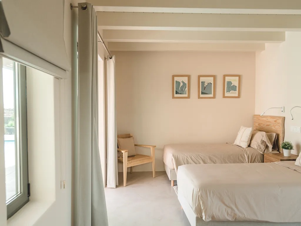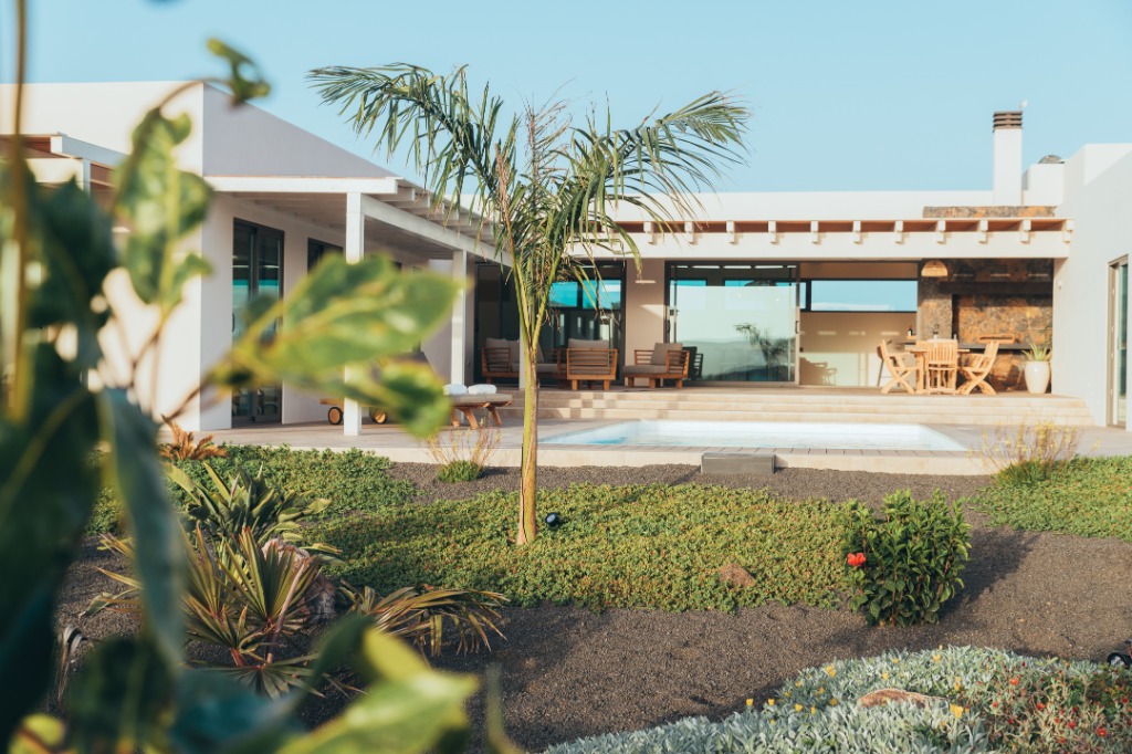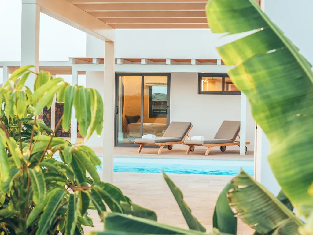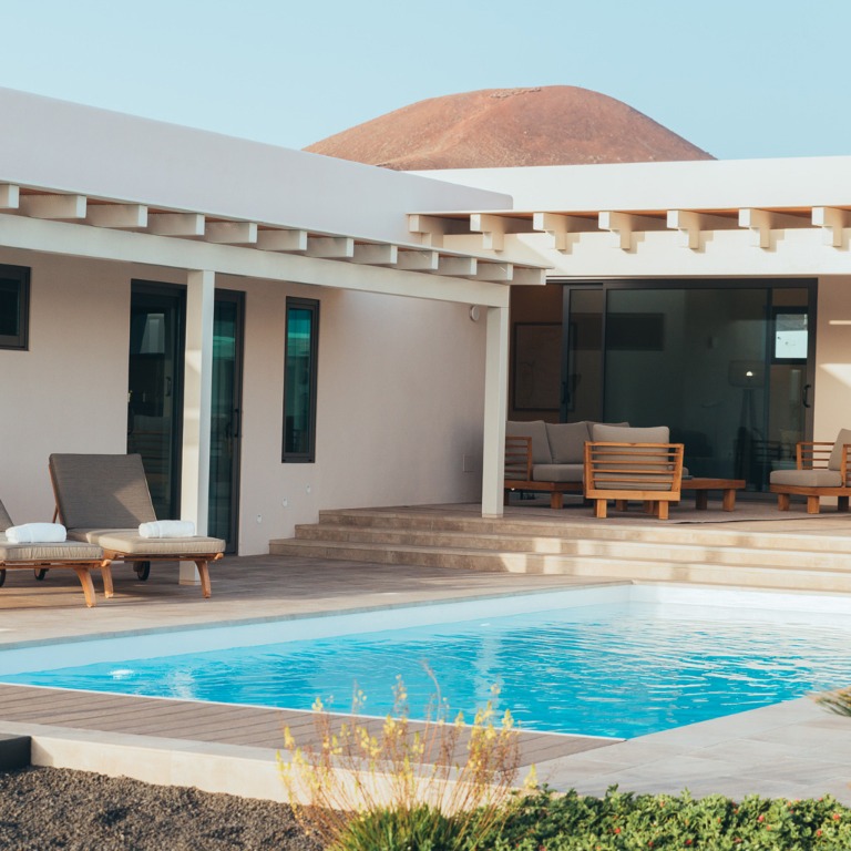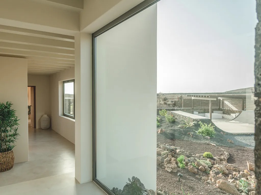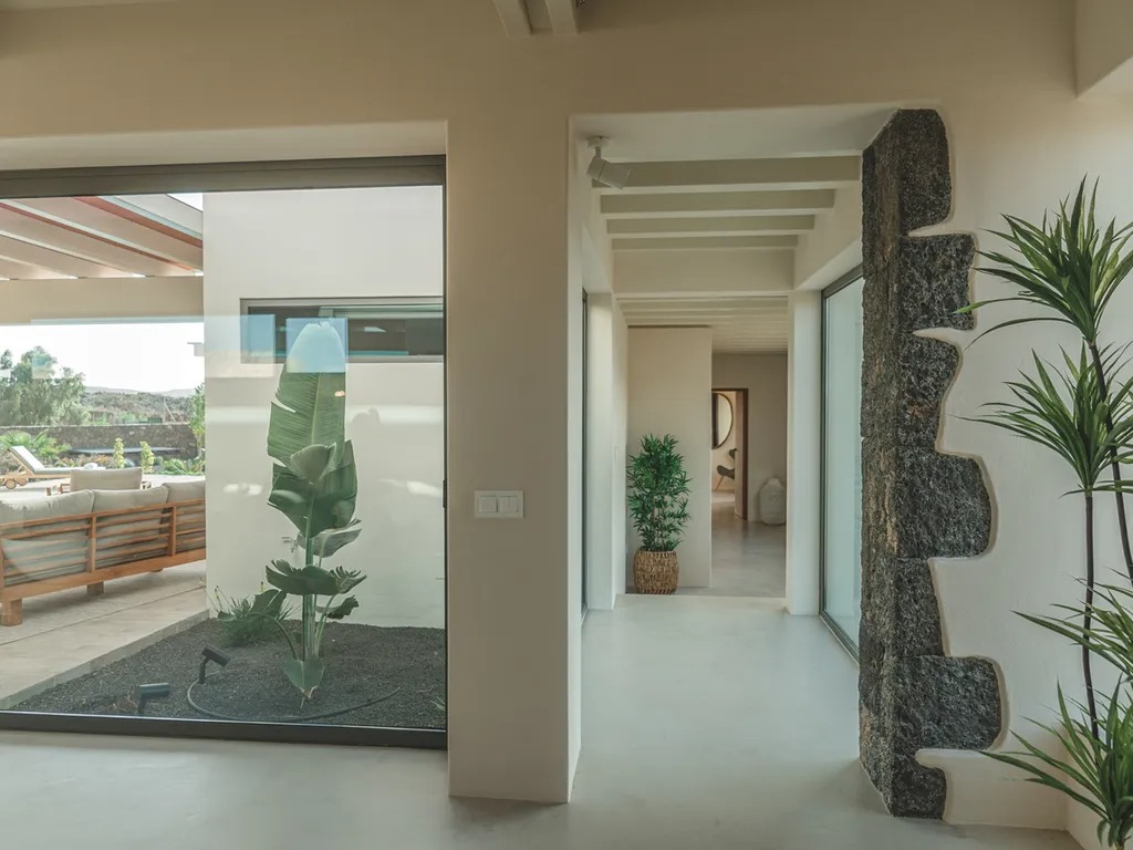 Sleeping up to 6 guests, this single-storey property on Fuerteventura's north coast offers a serene retreat in the village of Lajares. Inspired by Hawaiian architecture, the villa's design uses natural tones and clean lines to harmonize with the surrounding volcanic landscape, while its layout provides shelter from the island winds.
