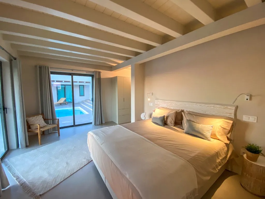 Ideal for families, the villa's three double bedrooms with en suite bathrooms offer both space and privacy. Children and teens can enjoy the skatepark with its halfpipe, while the heated swimming pool provides a safe and refreshing spot to play. The nearby village of Lajares offers a family-friendly atmosphere, with shops, cafés, and easy access to the beaches of El Cotillo and Corralejo, perfect for paddling, beach games, and exploring the coastline together.
