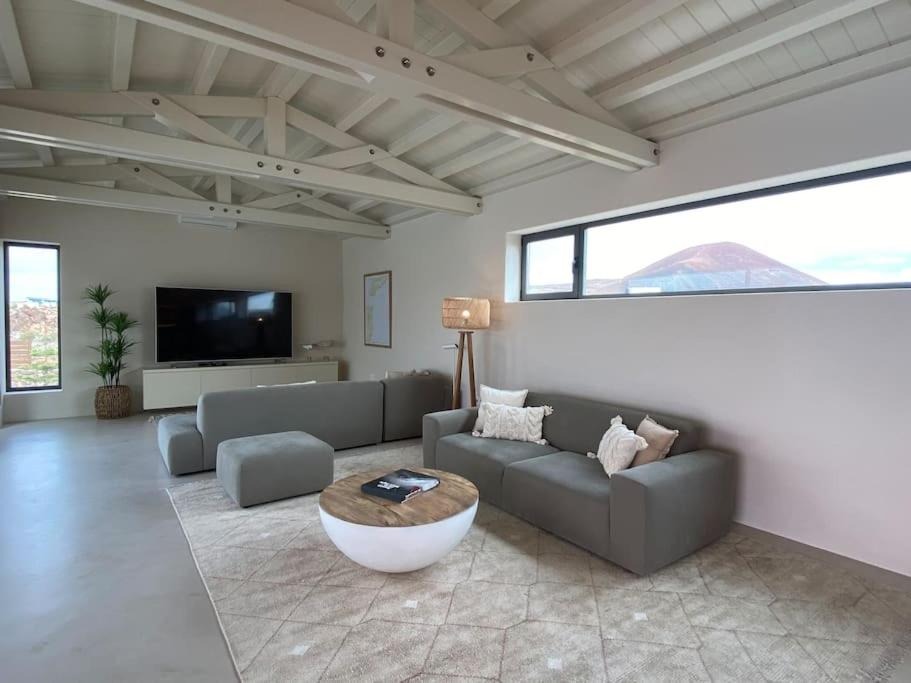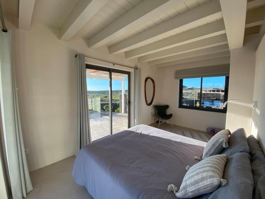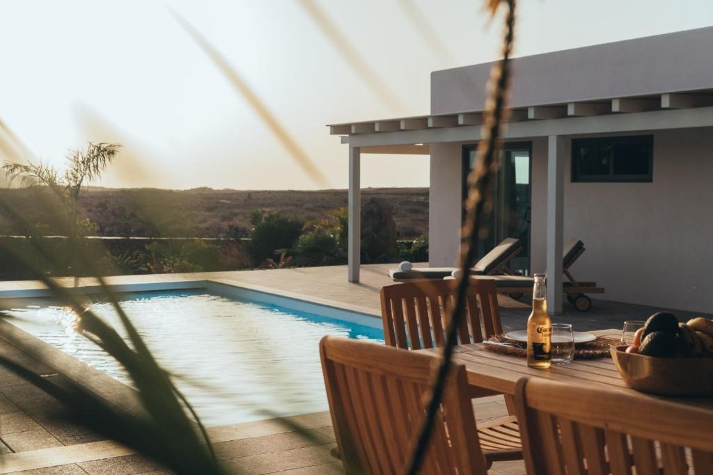 The villa is situated in the peaceful village of Lajares, known for its artisan workshops, independent cafés, and surf culture. The area provides a gateway to northern Fuerteventura's highlights, including the Calderón Hondo Volcano with scenic hiking trails and panoramic views. Nearby beaches, including the golden sands of El Cotillo and the dunes of Corralejo, offer swimming, surfing, and sunset walks within a short drive.