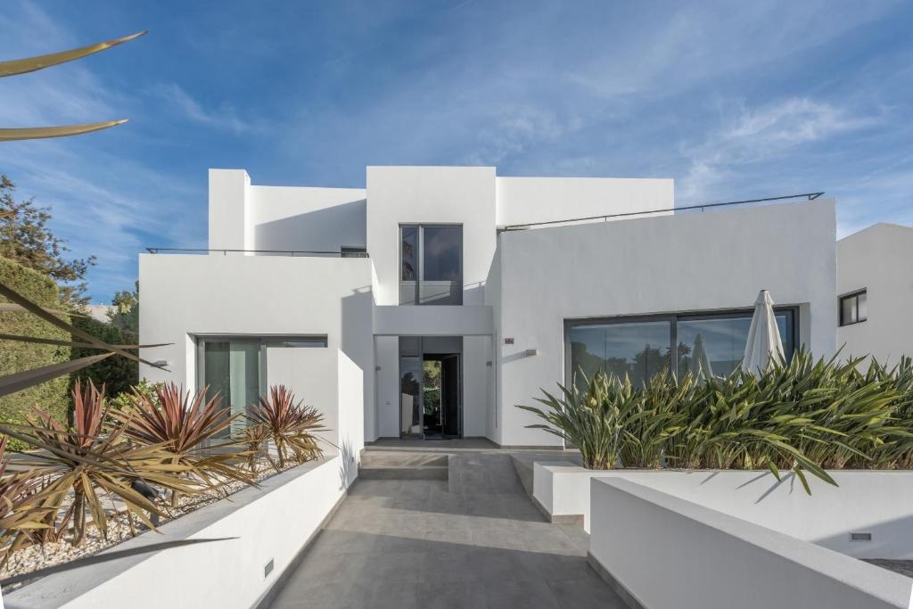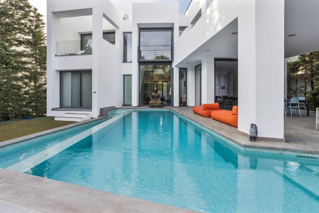 Outside, the villa is surrounded by well-maintained gardens that complement its minimalist design. A large swimming pool with a solarium offers a perfect spot for sunbathing and relaxation while taking in the cliffside and coastal views. Step out into the private garden and enjoy 5 balconies and 2 covered terraces with spectacular sea views, perfect for your morning coffee or a sunset drink. The private outdoor pool has two levels and a special children's area, ideal for relaxing in the Mediterranean sun. An outdoor shower and private barbecue are also available.