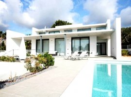 Perched on the cliffs of Cala Llenya, Ibiza, this modern four-bedroom property accommodates up to 8 guests and offers stunning sea views, a private swimming pool, and contemporary amenities for an unforgettable holiday experience. You'll find 4 spacious bedrooms and 5 bathrooms, each with its own en-suite facilities. The fully equipped private kitchen features an open-plan design with a central island and flows seamlessly into the bright living and dining area.
