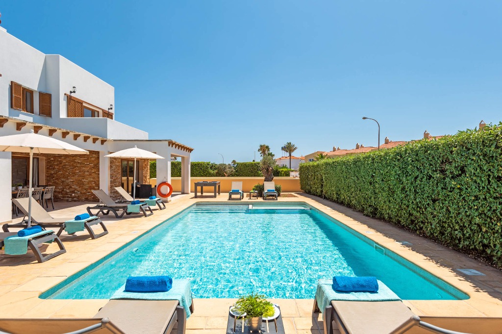 Discover a charming 4-bedroom villa in Calan Forcat, Menorca, perfect for families seeking relaxation and adventure. Part of our collection of outstanding holiday homes available for booking in Spain, this villa offers comfort, style, and a fantastic location near beaches, shops, and restaurants.