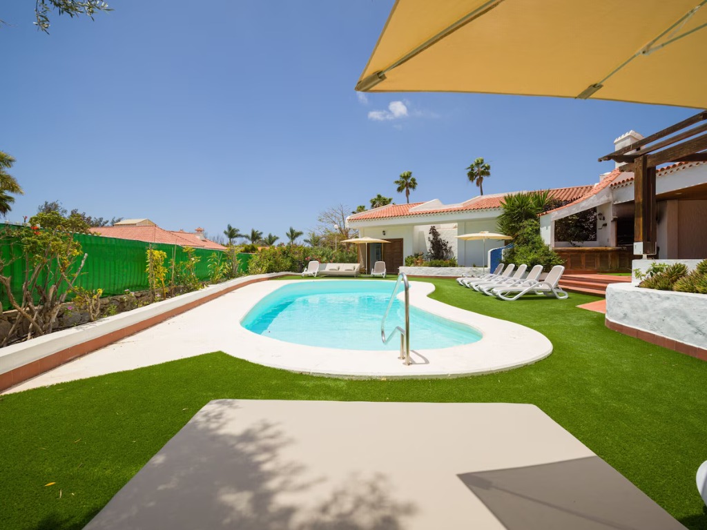 We had an incredible holiday at this charming accommodation. I don't think I can go back to staying in a big impersonal hotel or cramped holiday apartment ever again. It was just so fantastic having this gorgeous house and pool to ourselves. It is immaculately clean, well kept and private. We just felt so relaxed from the moment we arrived. The villa is set off a quiet road in the middle of maspalomas golf course. It is a very large house with six double bedrooms and one single. All are en suite which meant we were all comfortable and had our own space but then could share the really nice, large communal areas. Everything was spotless, fresh and felt very looked after. The kitchen was clean and well equipped with lots of work space, the huge terrace which leads directly to your own pool, has two perfect dining areas and there are lots of comfy sun beds. The house is surrounded by a lovely garden which had a path that runs all the way around. It is fenced off and gated so we felt very safe having the kids running around. There is also a games room which we loved with a ping pong table and fusball table. I think a car is a huge plus for exploring and shopping (less than 10mins drive away) but we would sometimes get a cab to the meloneras and maspalomas beach area which took about 8 minutes to get to as it was so easy. We can't wait to come back!!!!!!! Thank you so much for everything!!!