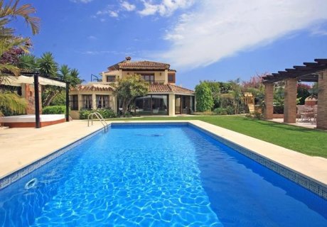This 5-bedroom holiday villa with en-suite bathrooms and a heated pool accommodates up to 14 guests, ideal for memorable family or group rentals in Marbella.