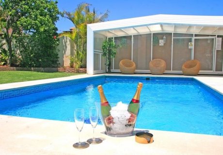 Book this villa in San Pedro Alcantara today! Enjoy luxury, a heated pool, and exquisite decor for an unforgettable Costa del Sol getaway.