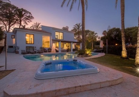 This villa in Nueva Andalucia offers a unique blend of modern design and traditional Andalucian features. With 5 bedrooms and 5 bathrooms, it accommodates up to 12 guests and includes a heated pool, jacuzzi, and spacious garden, perfect for both relaxation and entertaining.