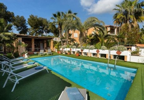 This spacious 5-bedroom holiday villa in Ibiza accommodates up to 10 guests with 4 bathrooms, ideal for family or group rentals and memorable stays.