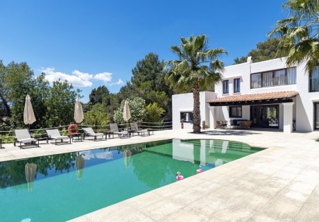 This luxurious 5-bedroom villa near Santa Gertrudis, Ibiza, offers a stunning pool, landscaped gardens, al-fresco dining, and spacious living areas. Perfect for relaxation and entertaining, it is an ideal retreat for families and groups. Book your exceptional Ibiza getaway today!