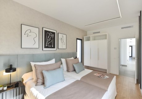 Accommodating up to 4 guests, this elegant property is located within the exclusive Salobre Golf Resort, offering a peaceful and luxurious retreat. The villa features a bright, modern interior with two spacious bedrooms and two full bathrooms. The master bedroom includes a comfortable double bed and an en-suite bathroom, while the second bedroom has twin beds that can be configured together or apart, with access to a shared bathroom. Both rooms are thoughtfully furnished with ample storage and tasteful decor, ensuring comfort and style throughout your stay.