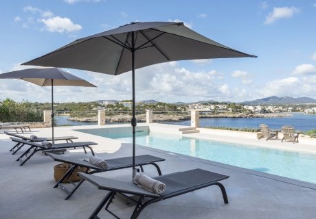 This exquisite holiday villa on the south-east coast of Majorca offers a luxurious retreat for up to 8 guests. Nestled directly on the seafront in Cala d'Or, the property combines architectural elegance with natural beauty, providing breathtaking sea views and direct access to the water via a private pontoon. Surrounded by Mediterranean gardens, cypress trees, and aromatic plants, the home is a sanctuary of tranquility and luxury.
