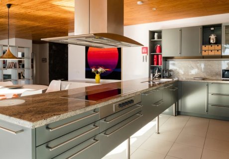 This elegant holiday villa is nestled at the top of the peaceful Barranco del Quíquere, one of the most exclusive coastal enclaves in southern Lanzarote near Puerto del Carmen. The surroundings are defined by volcanic stone cliffs, natural coves and sweeping views of the Atlantic, including the islands of Fuerteventura and Lobos. It is a private and tranquil retreat positioned between the popular resorts of Puerto del Carmen and Puerto Calero, ideal for a relaxing holiday immersed in the true island atmosphere.