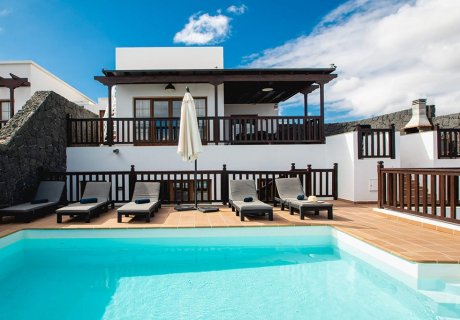 Large 6-bedroom villa in Playa Blanca with heated pool, ocean view, BBQ, air-conditioned bedrooms, games room and walking distance to beach and waterparks.