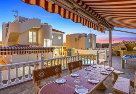 Stylish 4-bed villa in Costa Adeje with heated pool, roof terrace, air-con, modern interiors, and great outdoor dining areas close to beaches and restaurants.