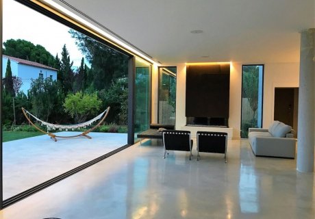 This villa is a luxury waterfront residence in Denia, offering total privacy thanks to its elevated position four metres above the seafront walkway, with open sea views and direct private access to the beach. Designed by architect Pilar Secada, the holiday home combines modern comfort, Mediterranean style and carefully planned outdoor spaces.