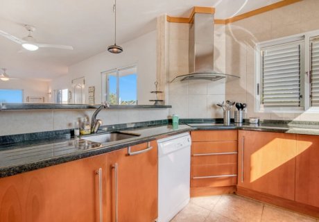 The private outdoor space is designed for enjoying the Mediterranean climate. The villa features a private swimming pool, a garden, open and covered terraces, 2 balconies, a barbecue area and an outdoor shower. There is also a small playground, making it a good choice for families with children.