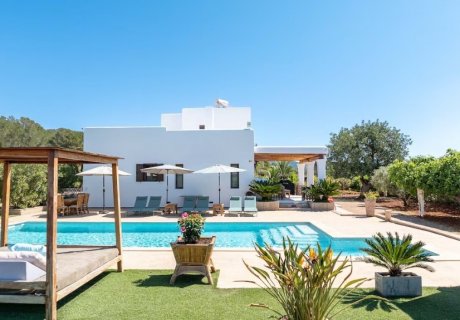 This beautifully designed modern villa offers a peaceful and stylish retreat in Sant Joan de Labritja, combining minimalist décor, bright open spaces, and a relaxing outdoor environment ideal for an unforgettable Ibiza holiday. Recently built, the accommodation is defined by its clean lines, fresh neutral palette, and a dominant white aesthetic that enhances both light and comfort throughout the home. With four double bedrooms, three bathrooms, a private pool, sun loungers, and inviting chill-out areas, this villa comfortably welcomes up to eight guests seeking serenity and easy access to the island's natural and cultural highlights.