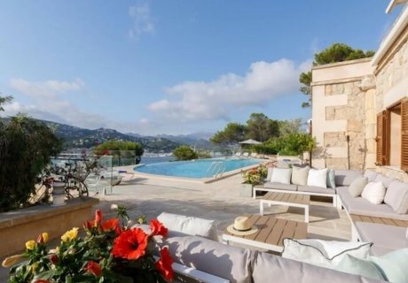 Rustic 6-bed villa in Port d'Andratx with sea views, infinity pool, terraces, outdoor dining, and direct access to the sea-perfect for a luxury coastal escape.