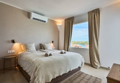 This fully renovated seafront villa is located near Cala Esmeralda in Cala d’Or, Mallorca, offering uninterrupted sea views, an infinity pool and direct access to the sea via a metal ladder from the rocks. The property consists of a main house and a separate annex and comfortably accommodates up to 8 guests.