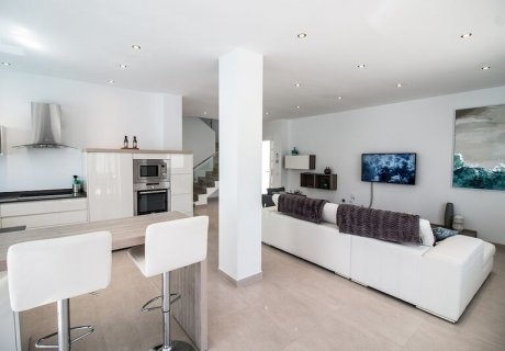 Located in the heart of central Puerto del Carmen, Lanzarote, this modern detached villa accommodates up to 6 guests with 3 bedrooms and 2 bathrooms. Just minutes from the beach and local amenities, the property is ideal for couples and families. Spread over two levels, it features a bright open-plan living room and kitchen, accessible through large patio doors. The lounge includes a comfortable leather sofa and chair, air conditioning, a flat-screen TV with Internet TV, offering a wide selection of UK channels, films, sports, and additional channels in various languages.