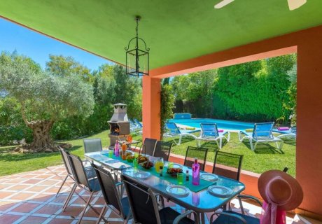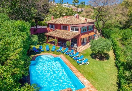 Located in Marbella, Costa del Sol, this spacious five-bedroom villa comfortably accommodates up to 11 guests and offers a private swimming pool set within a large lawned garden. Ideal for families or groups, the property provides two living areas and ample outdoor space for relaxation and play. Shops, restaurants, beaches, golf courses, and the amenities of Elviria, Fuengirola, and Puerto Banus are all within a short drive. Air conditioning/heating in the bedrooms and Wi-Fi are included.
