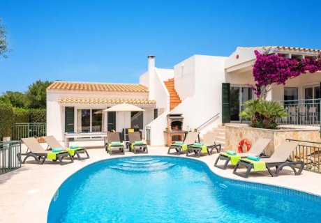This stunning 4-bedroom villa in Binibeca offers a heated pool, spacious terraces, and beautiful countryside views. Just minutes from the beach, shops, and local attractions, it's perfect for a memorable family or friends' holiday in Menorca. Book your stay today for an unforgettable escape!