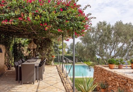 Perched on a hill with panoramic views stretching to Formentera, just a short drive from the village of Es Cubells, this expansive five-bedroom house provides a perfect holiday escape for families or groups of friends.