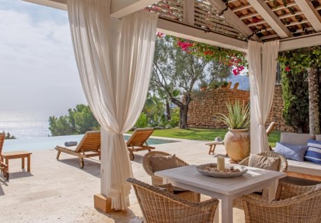 Experience this luxurious 5-bedroom frontline villa in Es Cubells, Ibiza, offering exceptional sea views and spacious interiors. Perfect for families or groups, this property provides privacy, tranquility, and an unforgettable holiday setting. Book your luxurious Ibiza getaway today!