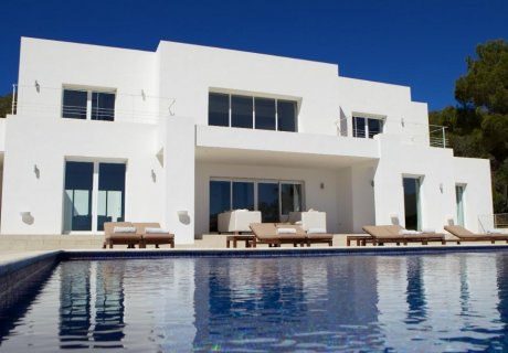 Modern villa in Vista Alegre, Es Cubells, with sea views, 4 bedrooms, pool, and close to beaches and Ibiza town.