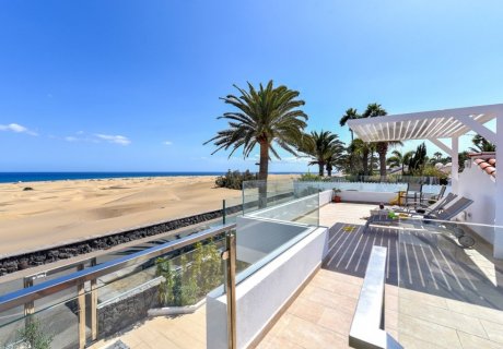 Situated along the promenade to the famous Maspalomas dunes, this stunning 3-bedroom beachfront villa offers a luxurious retreat for families or couples seeking a memorable holiday in Gran Canaria. Part of a collection of premium holiday homes, the property features a private pool, spacious terraces, and concierge services for a seamless and relaxing Canarian escape.