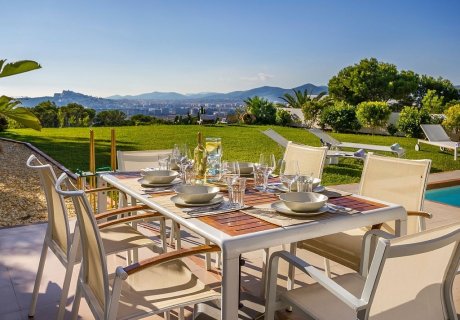 Combining panoramic sea views, proximity to Talamanca Beach, and the vibrant nightlife of Ibiza Town, this 5-bedroom villa in Cap Martinet offers an exceptional holiday experience. Ideal for families, friends, or groups, it provides the perfect mix of relaxation, luxury, and convenience for an unforgettable Ibiza escape. Book now and enjoy a remarkable stay in one of Ibiza's most sought-after locations.
