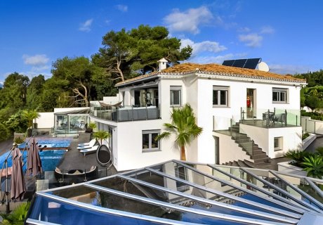 Set in Chaparral, Mijas, this luxurious five-bedroom villa accommodates up to 9 guests, offering direct access to the beach and stunning views over the Mediterranean Sea and the Atlas Mountains. Ideal for a family holiday, special event, or simply a relaxing getaway, the property combines elegance, comfort, and premium amenities across indoor and outdoor spaces.