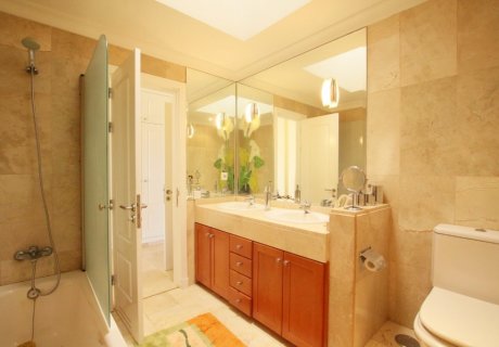 Outdoors, the private pool offers a refreshing retreat, ideal for leisurely swims or relaxing in the sun. The terrace provides ample space for sunbathing or enjoying alfresco meals, while the landscaped garden adds a serene and inviting atmosphere. Balconies allow guests to take in the pleasant breeze and scenic surroundings.